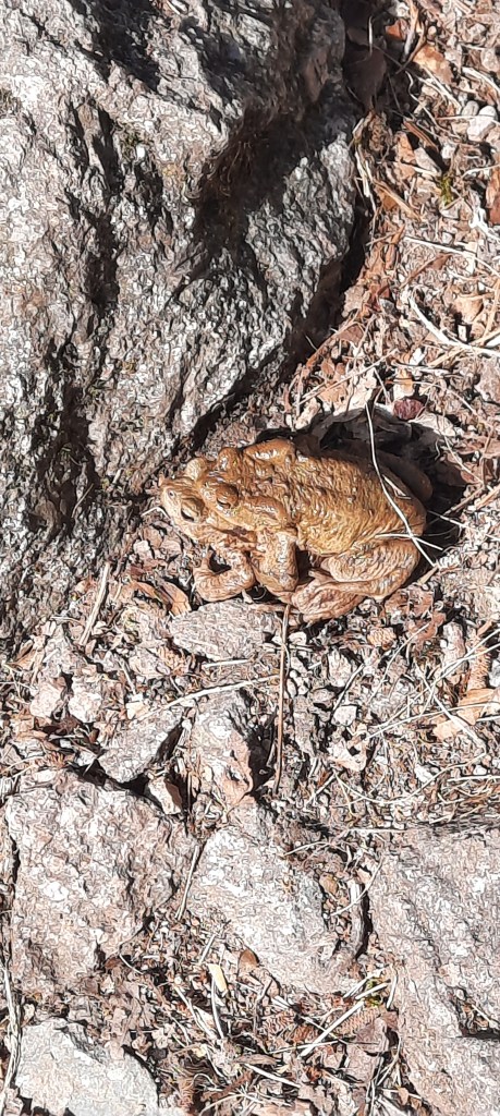 Attention à ne pas mettre le pied sur un couple de crapauds, c’est la saison des amours. Ces deux-là étaient au beau milieu du chemin.