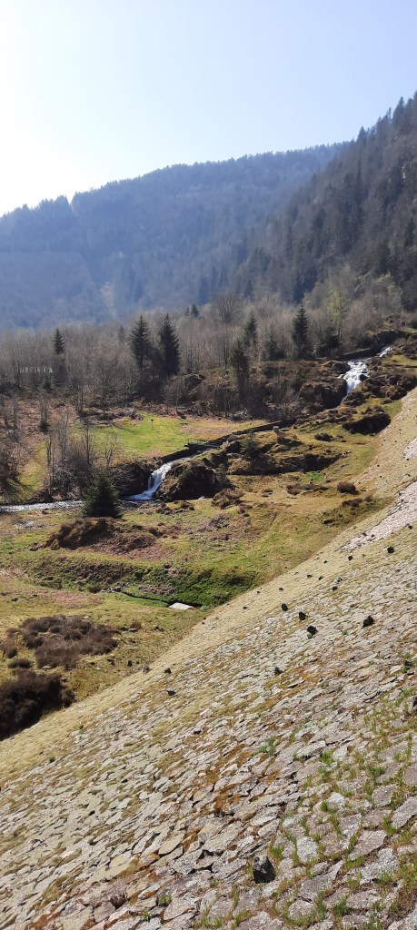 J’avais opté pour le Sundgau mais sans itinéraire précis et je me suis finalement retrouvé sur la route du ballon d’Alsace. Comme il n’est pas prudent de monter très haut à cause de la neige (et oui, il en reste) et surtout du gravier, j’ai juste dépassé un peu le lac de Sewen et je suis monté tranquillement au lac d’Alfeld en faisant mes lacets.